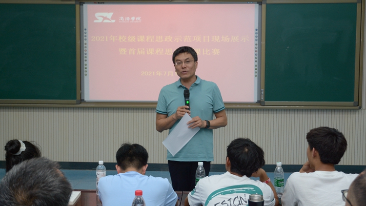 劉寶盈宣布比賽結(jié)果并做總結(jié)講話。他要求全體教師要以本次比賽為契機(jī),持續(xù)加強(qiáng)“課程思政”理論素養(yǎng),找準(zhǔn)實(shí)施“課程思政”教學(xué)的切入點(diǎn),錘煉“課程思政”教學(xué)技能,形成示范效應(yīng),激勵(lì)更多教師、更多課程積極開展“課程思政”建設(shè)與創(chuàng)新,形成“門門有思政、課課有特色、人人重育人”的良好局面,使各類課程與思想政治理論課程同向同行,發(fā)揮“課程思政”潤(rùn)物無(wú)聲的作用,推動(dòng)我?!罢n程思政”建設(shè)不斷取得新成效。