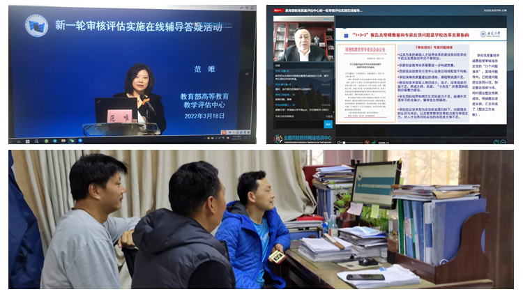 3月18日上午,教育部高等教育教學(xué)評(píng)估中心舉辦了“新一輪審核評(píng)估實(shí)施在線輔導(dǎo)答疑活動(dòng)”,副校長(zhǎng)劉寶盈,教務(wù)處、督導(dǎo)與評(píng)估中心、各二級(jí)院(部)相關(guān)人員參加了線上培訓(xùn)。