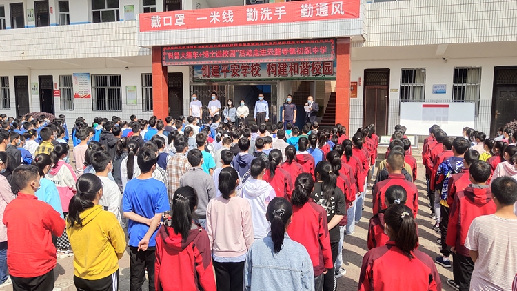 5月24日,2022年商洛市文化科技衛(wèi)生“三下鄉(xiāng)”集中示范暨第30屆“科技之春”宣傳月活動啟動儀式在鎮(zhèn)安縣云蓋寺鎮(zhèn)舉行,市委常委、市委宣傳部部長、市文化科技衛(wèi)生“三下鄉(xiāng)”活動領(lǐng)導(dǎo)小組組長賈永安出席活動并講話。云蓋寺鎮(zhèn)中學(xué)師生、各界群眾代表參加啟動儀式。我?!傲鲃涌萍拣^”師生為云蓋寺鎮(zhèn)中學(xué)等學(xué)校帶來了豐富多彩的科普活動。