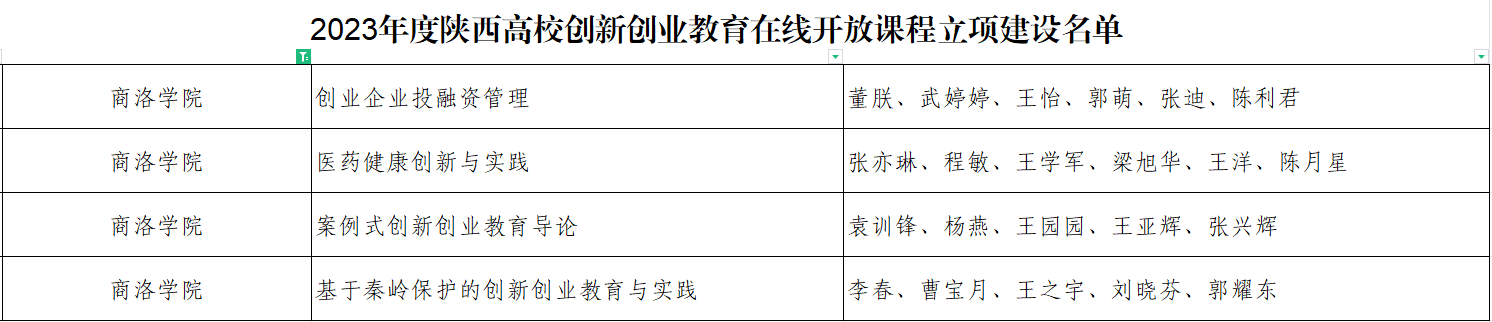 近日,陜西省教育廳發(fā)布了《關(guān)于公布2023年度陜西高校創(chuàng)新創(chuàng)業(yè)教育在線開(kāi)放課程立項(xiàng)建設(shè)名單的通知》,我?!秳?chuàng)業(yè)企業(yè)投融資管理》《醫(yī)藥健康創(chuàng)新與實(shí)踐》《案例式創(chuàng)新創(chuàng)業(yè)教育導(dǎo)論》《基于秦嶺保護(hù)的創(chuàng)新創(chuàng)業(yè)教育與實(shí)踐》四門(mén)課程獲批建設(shè)省級(jí)創(chuàng)新創(chuàng)業(yè)教育在線開(kāi)放課程,立項(xiàng)數(shù)量再創(chuàng)新高,位居同類院校前列。