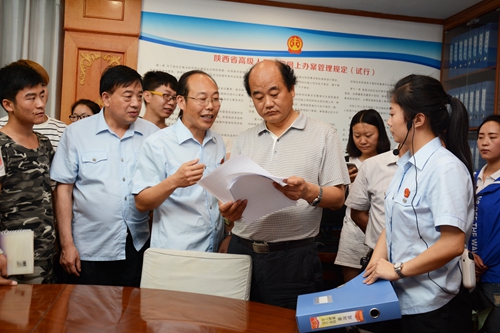 活動期間,校領(lǐng)導(dǎo)劉建林、范新會及師生依次參觀了商洛中院的審判法庭、科技法庭、黨建活動室、審判質(zhì)效管理辦公室和執(zhí)行指揮中心以及法官們工作生活場地,感受人民法院的神圣,感知審判執(zhí)行全過程,零距離了解人民法官。
