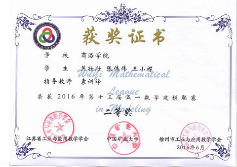 近日,由江蘇省工業(yè)與數(shù)學應(yīng)用學會主辦的“第十三屆五一數(shù)學建模競賽”結(jié)果揭曉,我校電子信息與電氣工程學院物理學專業(yè)2014級焦壯壯、張偉偉和電子信息工程專業(yè)2015級王小蝶3位同學組成的數(shù)學建模參賽隊喜獲二等獎。這是我校首次組建代表隊參加此項賽事并獲佳績。