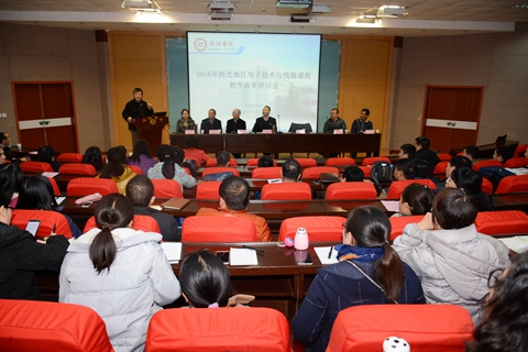 12月3日,2016年西北地區(qū)電子技術(shù)與線路課程教學(xué)改革研討會在我校圖書館一樓報告廳舉行,研討會圍繞“發(fā)揮網(wǎng)絡(luò)教育優(yōu)勢,探索電子技術(shù)、電子線路課程教學(xué)內(nèi)容與教學(xué)方法的改革與創(chuàng)新思路”展開研討交流。副校長劉寶盈出席研討會開幕式。
