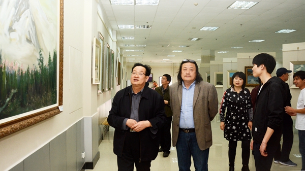4月25日,副校長魏書堂來到學(xué)校藝術(shù)展廳,興致勃勃地參觀了藝術(shù)學(xué)院畢業(yè)生劉柏林、何文韜油畫作品聯(lián)展。商洛市書法院院長吳平均等校內(nèi)外書畫家參加開幕式,對展出作品給予關(guān)懷和指導(dǎo),并簽名留念。
