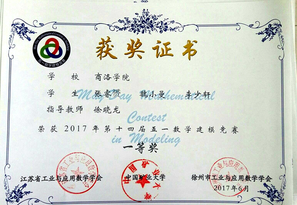 近日,由江蘇省工業(yè)與應(yīng)用數(shù)學(xué)學(xué)會主辦的第十四屆五一數(shù)學(xué)建模競賽結(jié)果揭曉,我校共獲得一等獎1項,二等獎1項,三等獎3項,我校被評為“優(yōu)秀組織單位”。這是我校在此項賽事中首次獲得一等獎。
