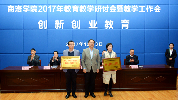 大會對我校2017年度優(yōu)秀教案及優(yōu)秀電子課件、教學(xué)技能競賽優(yōu)勝者、教學(xué)研討會優(yōu)秀論文、校級教學(xué)成果、第三屆“互聯(lián)網(wǎng)+”大學(xué)生創(chuàng)新創(chuàng)業(yè)大賽優(yōu)秀指導(dǎo)教師、教育教學(xué)優(yōu)秀組織單位進行了表彰,副校長魏書堂宣讀了表彰決定,出席大會的校領(lǐng)導(dǎo)為受表彰的集體和個人代表頒發(fā)了獲獎證書,并對電氣工程及其自動化專業(yè)虛擬仿真實驗教學(xué)中心、生物醫(yī)藥與食品工程學(xué)院分別進行了省級虛擬仿真實驗教學(xué)中心、省級創(chuàng)新創(chuàng)業(yè)教育改革試點學(xué)院的授牌。獲獎教師代表黃荊晶、獲獎單位代表人袁訓(xùn)峰分別作了發(fā)言。