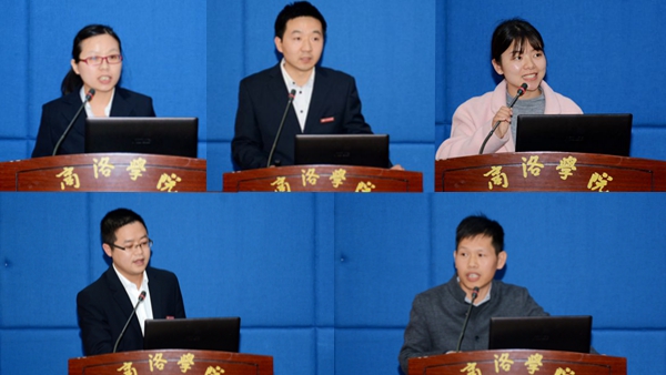 馬克思主義學(xué)院劉玲霞、化材學(xué)院劉彥峰、經(jīng)管學(xué)院李泓波、生物學(xué)院梁旭華、人文學(xué)院張文諾5位教師代表在大會上就教學(xué)實踐的體會進行了交流發(fā)言。