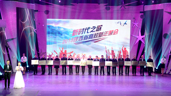 12月27日,陜西省教育廳舉辦的陜西省第五屆大學(xué)生藝術(shù)展演表彰及“新時(shí)代之歌 2018陜西高校新年晚會(huì)”在西安廣電大劇院舉行,我校黨委副書(shū)記彭虎軍代表學(xué)校出席并接受“優(yōu)秀組織單位”獎(jiǎng)牌。