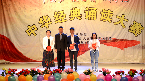 為深入學(xué)習(xí)貫徹習(xí)近平新時代中國特色社會主義思想和黨的十九大精神,全面落實《國家語言文字事業(yè)“十三五”發(fā)展規(guī)劃》,5月9日晚,由教務(wù)處、人文學(xué)院、藝術(shù)學(xué)院聯(lián)合承辦的“中國夢?愛國情?成才志”中華經(jīng)典誦讀大賽在大學(xué)生活動中心成功舉辦,副校長劉勇出席大賽。宣傳部、團(tuán)委、教務(wù)處、人文學(xué)院、藝術(shù)學(xué)院相關(guān)負(fù)責(zé)人參加活動。
