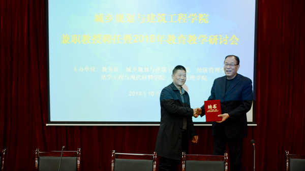 10月31日,城鄉(xiāng)規(guī)劃與建筑工程學(xué)院兼職教授聘任暨2018年教育教學(xué)研討會(huì)順利舉行,西安建筑科技大學(xué)白國(guó)良教授在會(huì)上受聘為我校兼職教授。校長(zhǎng)范新會(huì)出席聘任儀式并為白教授頒發(fā)聘書(shū)。校黨委委員、教務(wù)處處長(zhǎng)李超,校黨委委員、城鄉(xiāng)規(guī)劃與建筑工程學(xué)院院長(zhǎng)楊存典及人事處相關(guān)負(fù)責(zé)人參加了聘任儀式。聘任儀式由李超主持。