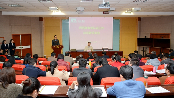 龍治剛在動員講話中指出,要充分認識師范類專業(yè)認證工作的重要性,全面掌握、深刻領會認證指標和內(nèi)涵,進一步統(tǒng)一思想,凝心聚力,認真做好我校師范類專業(yè)認證工作,提高師范類專業(yè)人才培養(yǎng)質(zhì)量。龍治剛對做好師范類專業(yè)認證工作提出了三點要求:一是充分認識師范類專業(yè)認證的重要意義。開展師范類專業(yè)認證工作是從源頭上培養(yǎng)高素質(zhì)教師隊伍的重要舉措,必將開啟高水平教師教育體系建設、教師教育全面振興發(fā)展的新征程。師范類專業(yè)在我們學校三分天下有其一,我們一定要抓住歷史機遇,切實提高師范類專業(yè)建設水平;二是高度重視師范類專業(yè)認證背景下的嚴峻挑戰(zhàn)。師范類專業(yè)認證是對專業(yè)的整體認證,在認證對象、“專業(yè)認證結(jié)果使用”規(guī)定、標準和程序等方面面臨巨大的挑戰(zhàn)和機遇,學校必須全面深化教學改革,牢固樹立人才質(zhì)量意識,創(chuàng)造條件做強、做優(yōu)現(xiàn)有的師范專業(yè);三是齊心協(xié)力做好我校師范類專業(yè)認證工作。統(tǒng)一思想,提高認識,明確責任,勇于擔當,以只爭朝夕的緊迫感和舍我其誰的責任感,主動積極參與到專業(yè)認證的準備工作中去,以評促建,以評促改,以評促強,推動我校教育教學工作再上新臺階。