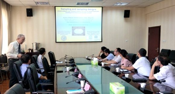 座談會(huì)后,Dr. Zhang Chaosheng以《大數(shù)據(jù)時(shí)代基于機(jī)器學(xué)習(xí)的地球化學(xué)變量的空間分析》為題作了學(xué)術(shù)報(bào)告,Prof. Alecos Demetriades以《采樣和采樣設(shè)計(jì)》《如何撰寫英文論文》為題作了兩場學(xué)術(shù)報(bào)告。報(bào)告后,地理專業(yè)教師們圍繞大數(shù)據(jù)處理、機(jī)器學(xué)習(xí)、空間變異、地球化學(xué)研究與采樣方法、論文寫作等方面與兩位專家進(jìn)行了深入交流,報(bào)告會(huì)氣氛活躍,效果良好。