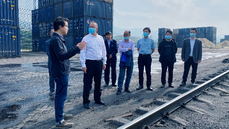 郭瑾一行在商洛陸港實(shí)業(yè)集團(tuán)有限公司總經(jīng)理譚震、集團(tuán)黨支部書記李開旺、副總經(jīng)理張同謙等人陪同下參觀了公司貨場(chǎng),觀看了公司形象宣傳片。