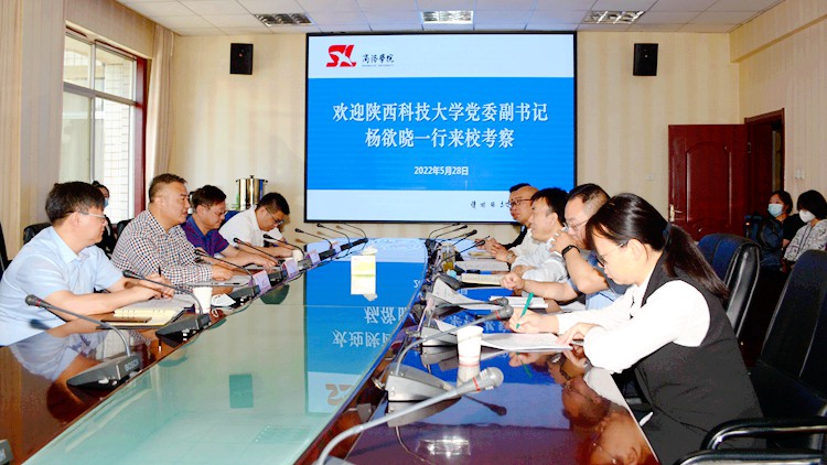 5月28日上午,陜西科技大學黨委副書記楊欲曉帶領馬克思主義學院黨政領導一行4人來我??疾旖涣鳌P|h委副書記彭虎軍熱情接待了楊欲曉一行,雙方圍繞高校馬克思主義學院科學化建設進行了座談。陜西科技大學馬克思主義學院院長吳明永和我校馬克思主義學院院長蔣正治分別代表兩校為“陜西科技大學馬克思主義學院優(yōu)秀研究生培養(yǎng)基地”揭牌。