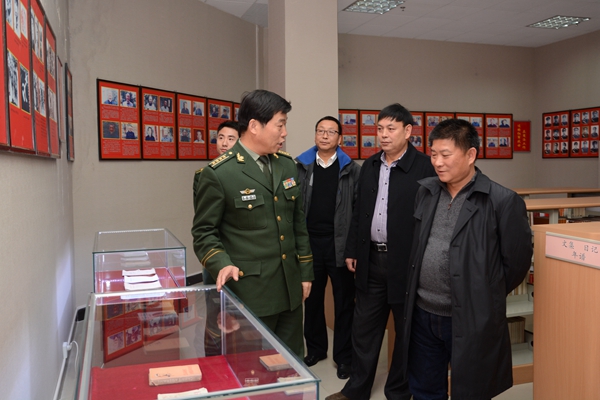 12月3日上午,武警工程大學軍事基礎教育學院政委曹學義、副院長王勇一行6人專程來到我校,考察商洛紅色文化資料館,就紅軍長征史料進行調研和交流,并向我校捐贈圖書。黨委副書記、副校長范新會,副校長劉寶盈熱情接待了曹學義一行。
