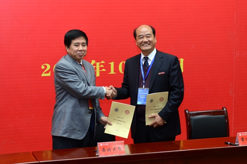 10月23日,在商洛學(xué)院創(chuàng)建一流應(yīng)用型本科院校動(dòng)員大會(huì)上,西北大學(xué)黨委副書記、副校長(zhǎng)賈明德與我校黨委書記、校長(zhǎng)劉建林代表雙方簽訂《西北大學(xué)對(duì)口支援商洛學(xué)院協(xié)議書》。