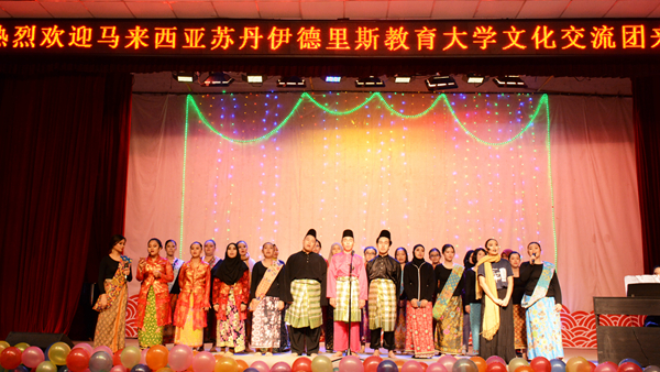 14日下午,我校和馬來西亞蘇丹伊德里斯教育大學(xué)學(xué)生聯(lián)袂演出了一臺精彩的文藝節(jié)目。其中我校學(xué)生表演的具有中華民族特色的漢服舞蹈《禮儀之邦》《青花瓷》、武術(shù)表演《武行我素》等節(jié)目獲得了來訪師生的贊賞。蘇丹伊德里斯教育大學(xué)師生也帶來了馬來西亞傳統(tǒng)舞蹈《sumazau》《joget》和歌曲大合唱,精彩的表演獲得了現(xiàn)場陣陣掌聲。