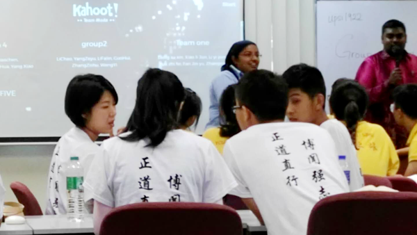 在為期一周的文化交流活動(dòng)中,交流團(tuán)師生參觀了校園,體驗(yàn)了交互式英語口語課堂教學(xué),觀摩了該校教師互聯(lián)網(wǎng)+互動(dòng)教學(xué)課堂,并參加了“檳島教育之旅”,感受了當(dāng)?shù)貧v史文化與風(fēng)土人情。