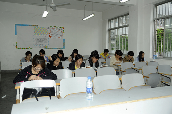 校園里的廣播剛剛響起,晨曦園就有人背著書包手里捧著書,三三兩兩的大聲朗讀。記者了解到這些同學(xué)大部分是大二、大三的。有位大二的同學(xué)說:“早上六點(diǎn)多就起床了,在這背四級英語作文,有時(shí)候也記單詞?!?/p>