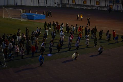 天還沒亮,體育場上已經(jīng)熱鬧起來,晨跑和廣播體操驅(qū)走了寒氣,讓大家精神煥發(fā)。