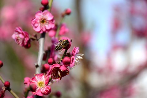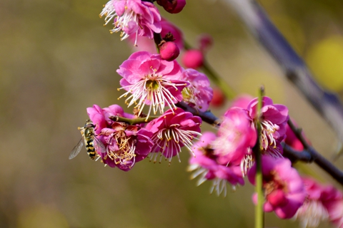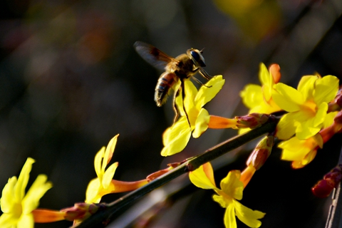 春風(fēng)送暖,校園里迎春花、桃花再次綻放,勤勞的蜜蜂忙著采蜜,小鳥處處啼叫,一派生機(jī)盎然的景象。
