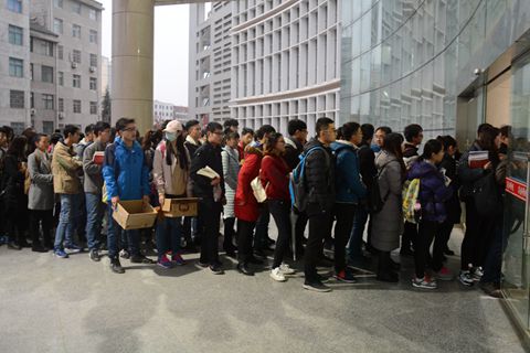 早上7點(diǎn),圖書館外已經(jīng)排起了長隊。
