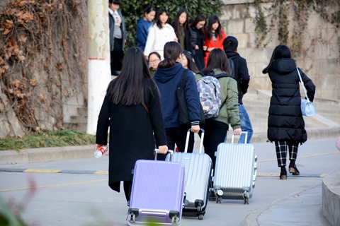 同學(xué)們提著行李,回到了心愛的校園,開始新學(xué)期的生活。