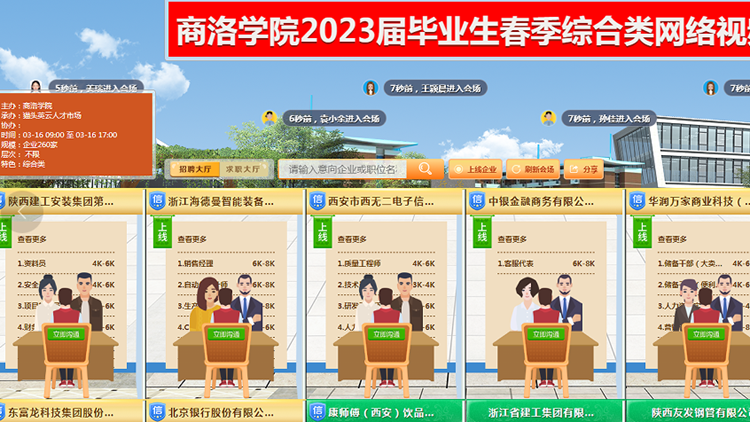 本次招聘會(huì)是我校2023屆畢業(yè)生“春季促就業(yè)專項(xiàng)行動(dòng)”開展以來(lái)舉辦的第一場(chǎng)網(wǎng)絡(luò)視頻招聘會(huì),旨在通過(guò)深度對(duì)接就業(yè)市場(chǎng),積極聯(lián)系就業(yè)單位,持續(xù)深挖就業(yè)資源,千方百計(jì)確保畢業(yè)生充分就業(yè)。下一步,學(xué)校將繼續(xù)圍繞“商洛學(xué)院2023屆畢業(yè)生春季促就業(yè)工作行動(dòng)”,積極尋找新的就業(yè)“增長(zhǎng)極”、聯(lián)系新的就業(yè)“客戶端”,促進(jìn)畢業(yè)生更加充分、更高質(zhì)量就業(yè)。