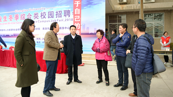 為切實做好2018屆畢業(yè)生的就業(yè)工作,有效搭建畢業(yè)生與用人單位雙向選擇平臺,促進畢業(yè)生就業(yè)數(shù)量和質量的雙提升。12月2日,由陜西省教育廳主辦,商洛市人力資源和社會保障局協(xié)辦,我校與商洛市人才交流服務中心承辦的2018屆畢業(yè)生冬季綜合類校園招聘會在我校成功舉辦。校黨委副書記彭虎軍、商洛市人力資源和社會保障局和商洛市人才交流服務中心領導視察指導招聘會工作,各有關職能部門負責人、二級學院黨總支書記及畢業(yè)班輔導員全程參與招聘會的服務工作。