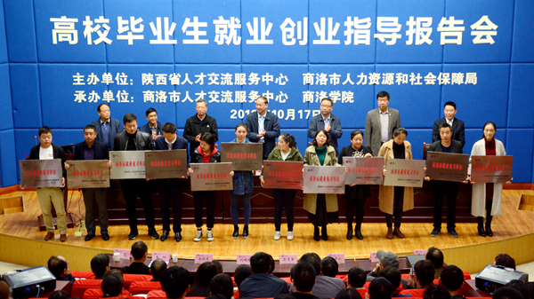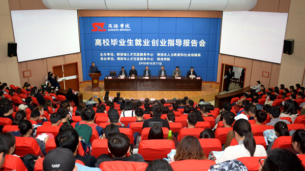10月17日,由陜西省人才交流服務(wù)中心、商洛市人力資源和社會(huì)保障局主辦,我校和商洛市人才交流服務(wù)中心承辦的高校畢業(yè)生就業(yè)創(chuàng)業(yè)指導(dǎo)報(bào)告會(huì)在我校成功舉辦。我校黨委書記龍治剛、黨委副書記彭虎軍,中國西安人才市場管理委員會(huì)辦公室(陜西省人才交流服務(wù)中心)主任劉鵬程、陜西省人才交流服務(wù)中心畢業(yè)生就業(yè)創(chuàng)業(yè)工作部部長余俊杰、商洛市人力資源和社會(huì)保障局副局長衛(wèi)華山、商洛市人才交流服務(wù)中心主任舒建宏等出席會(huì)議。會(huì)議由學(xué)生處處長石啟英主持。