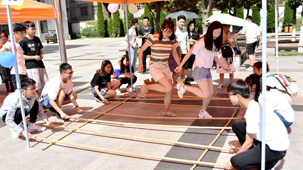 ——舉辦素質(zhì)拓展活動(dòng),傳承體育文化精神。在校體育場(chǎng)開展以“卓越團(tuán)隊(duì),共贏未來”為主題的素質(zhì)拓展活動(dòng)。活動(dòng)共設(shè)置了珠行萬里、搭橋過河和踩氣球三個(gè)項(xiàng)目。各組成員滿懷激情,奮力拼搏,用平穩(wěn)的心態(tài)和良好的協(xié)作能力完成了各項(xiàng)比賽,深化大學(xué)生“走下網(wǎng)絡(luò),走出宿舍,走向操場(chǎng)”主題課外體育鍛煉活動(dòng),將德育與智育、體育、美育有機(jī)結(jié)合,寓思想政治教育于體育文化活動(dòng)中,強(qiáng)化校訓(xùn)校史育人功能,營(yíng)造了良好的校風(fēng)和學(xué)風(fēng)。