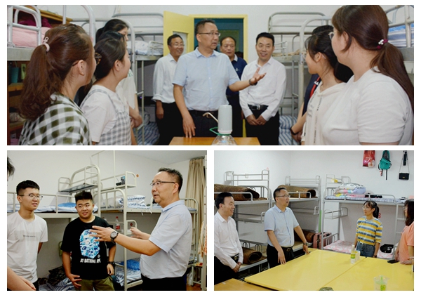 9月3日晚,校黨委書記龍治剛、黨委副書記彭虎軍和工作人員一起深入學(xué)生宿舍,看望慰問我校2019級新生,給他們送去關(guān)懷與問候。