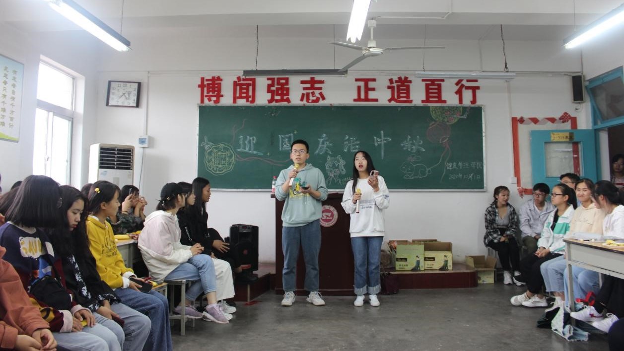 人文學(xué)院以“融入大集體 適應(yīng)新生活”為主題,組織全體學(xué)生干部與2020級在校新生開展了“迎雙節(jié)”聯(lián)歡會。會上,新老生代表進行自我介紹、禮物互換、才藝表演,師生互動開展了詩詞大比拼、成語接龍、數(shù)字炸彈小游戲,并共同觀看了抗擊新冠肺炎疫情專題片《在一起》。