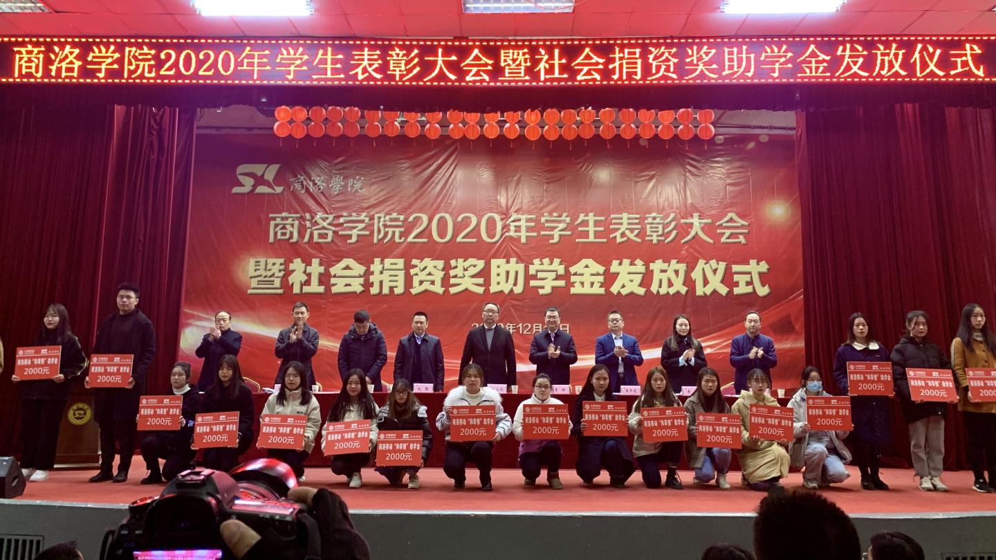 12月16日,我校2020年學(xué)生表彰大會(huì)暨社會(huì)捐資獎(jiǎng)助學(xué)金發(fā)放儀式在大學(xué)生活動(dòng)中心隆重舉行。校黨委書記龍治剛、黨委副書記劉勇,國網(wǎng)商洛供電公司總經(jīng)理李強(qiáng),中國聯(lián)通商洛分公司副總經(jīng)理毛繁,中國電信商洛分公司副總經(jīng)理王軍建,中國移動(dòng)商洛分公司黨委委員、副總經(jīng)理許鵬,貴州茅臺(tái)陜西省區(qū)域負(fù)責(zé)人李方,校黨委委員、黨委辦公室·院長辦公室主任、校友總會(huì)辦公室負(fù)責(zé)人張向東等出席大會(huì)。大會(huì)由學(xué)生處處長石啟英主持。