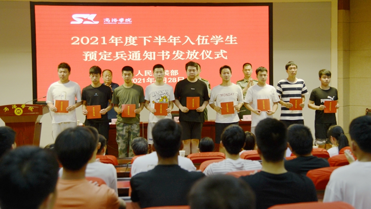 6月28日,我校舉辦了2021年度下半年入伍學(xué)生預(yù)定兵通知書發(fā)放儀式,商州區(qū)武裝部部長曹建明上校、副部長陳強(qiáng)中校出席會議。我校學(xué)生處處長石啟英、各二級學(xué)院學(xué)工辦主任及51名預(yù)定新兵參加了會議。會議由石啟英主持。