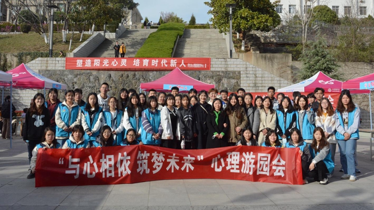 各二級學院積極響應(yīng),精心策劃開展了形式多樣的心理健康教育宣傳季系列活動。馬克思主義學院帶領(lǐng)學生觀看心理短片《我有一只黑狗,他的名字叫做抑郁》,引導學生正確認識自我、關(guān)愛他人。人文學院舉辦心理健康主題演講活動,提高了學生對心理健康問題的重視程度,強化了大學生關(guān)注心理健康的意識。電信學院通過座談交流、心理團輔和心理委員培訓等方式為學生育心賦能。生物學院通過開展心理主題班會、心理漫畫和團體輔導等系列活動,全方位幫助學生加強自我認識,提升心理素質(zhì)。建工學院以游戲體驗的方式引導學生感受團隊力量,悅納自己,欣賞他人。經(jīng)管學院創(chuàng)建“心理有約”3C工作室、開展心理電影展播與賞析活動,合力幫扶學生陽光健康成長,引導大學生以和諧健康的心態(tài)面對美麗人生。數(shù)計學院、化材學院、藝術(shù)學院和健康學院細致安排部署宣傳季相關(guān)工作,引領(lǐng)學生一起重溫“325善愛我”誓詞并莊重簽名,抒發(fā)學生對自我的關(guān)愛,號召學生關(guān)注心理健康。