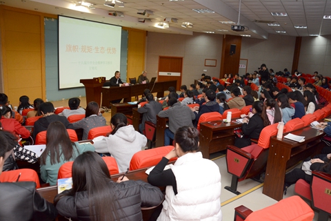 為深入學(xué)習(xí)和理解黨的十八屆六中全會精神,11月14日,左曉民教授應(yīng)邀來到“青年大講堂”,以《旗幟·規(guī)矩·生態(tài)·優(yōu)勢》為題,為我校青年學(xué)生作了十八屆六中全會精神學(xué)習(xí)報告。紀(jì)委書記王思懷出席報告會。校團委、各二級學(xué)院黨總支、各團總支負(fù)責(zé)人參加報告會?!扒囫R工程”全體學(xué)員、學(xué)生會主要干部聽取了報告。報告會由團委書記蔣正治主持。