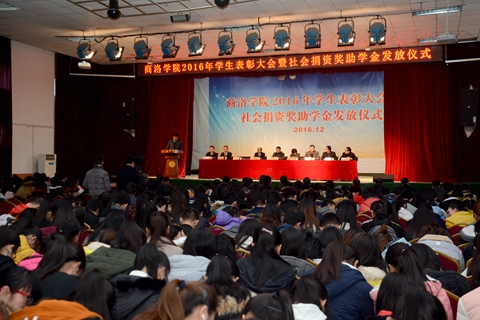 12月8日,我校隆重舉行2016年學生表彰大會暨社會捐資獎助學金發(fā)放儀式。校黨委副書記、副校長范新會,副校長魏書堂、黨委副書記彭虎軍,陜西省電力公司外聯(lián)部副主任李亞琳、商洛供電局黨委書記陳飛、中國聯(lián)通商洛分公司總經(jīng)理古濤、商洛市郵政分公司副總經(jīng)理張勛、中國電信商洛分公司副總經(jīng)理胡萬社,陜西森弗天然制品有限公司董事長、總經(jīng)理金新康等出席大會。大會由彭虎軍主持。