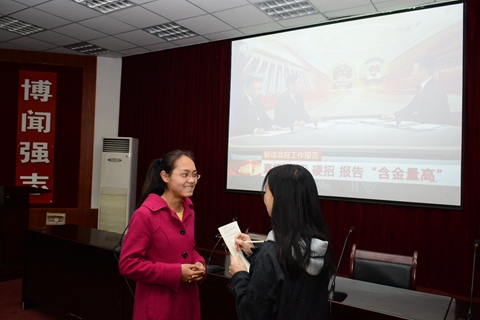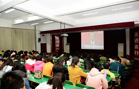 3月3日和3月5日,政協(xié)第十二屆全國(guó)委員會(huì)第五次會(huì)議、十二屆全國(guó)人大五次會(huì)議分別在北京人民大會(huì)堂開幕。我校組織師生在報(bào)告廳集中收看了開幕式實(shí)況直播,師生們分別通過(guò)手機(jī)、網(wǎng)絡(luò)、電視、廣播等媒體積極收看收聽(tīng),對(duì)兩會(huì)精神、熱點(diǎn)話題進(jìn)行了學(xué)習(xí)討論。