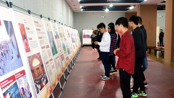 師生們從“一個愿景”、“中國特色社會主義道路”、“五位一體”總體布局、“四個全面”戰(zhàn)略布局等眾多板塊中深入了解到近五年來我國在各項事業(yè)中取得的巨大進步和我省緊抓新一輪西部大開發(fā)、“一帶一路”建設(shè)等歷史機遇,奮力追趕超越,主動適應(yīng)把握引領(lǐng)經(jīng)濟新常態(tài)取得的飛速發(fā)展。期間,通過閱覽學(xué)習“扎實加強文化建設(shè)”“扎實推進經(jīng)濟持續(xù)健康發(fā)展”、“扎實落實全面從嚴治黨”、“ 生態(tài)環(huán)境持續(xù)改善”等堅定了同學(xué)們的文化自覺與文化自信,使我校師生接受了一次生動的思想教育,使師生進一步認識到奮力追趕超越是三秦大地兒女的時代使命和擔當。