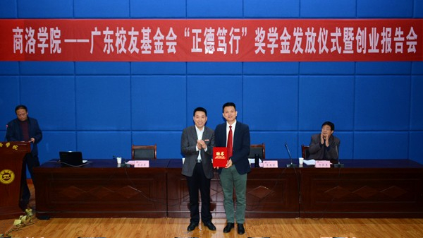 李玉望介紹了“正德篤行”獎學金設立的相關情況,并表示自己作為廣東校友基金會的代表、作為獎學金設立方,為獲獎學生頒發(fā)獎金證書,就是要將“商洛學院精神”傳承下去,讓每一名商洛學院學子都有獲得感、存在感、榮譽感,希望學弟學妹們樹立遠大目標,努力回饋社會,樹立擔當奉獻意識,為今后的成才成功奠定良好基礎。