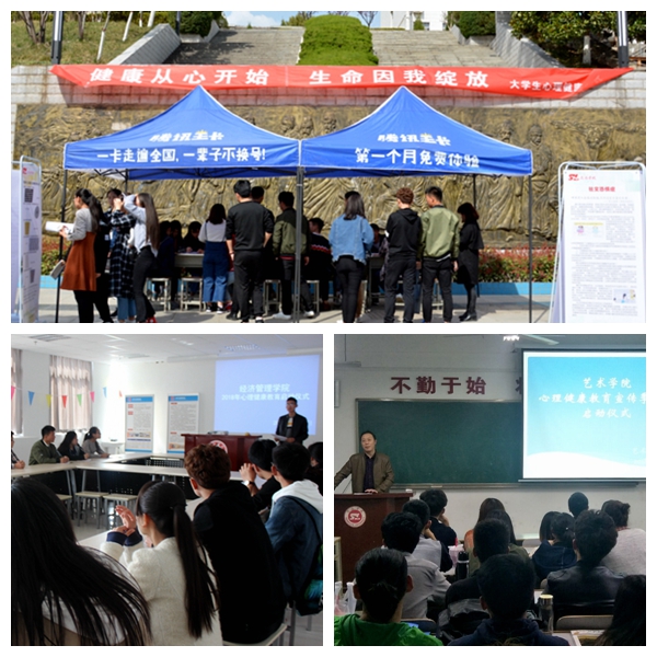 各二級學(xué)院也積極響應(yīng),陸續(xù)舉行了心理健康教育系列活動啟動儀式。其中,數(shù)計學(xué)院開展了以“放飛心理之翼,塑造理想自我”為主題的現(xiàn)場簽名活動;經(jīng)管學(xué)院開設(shè)了“愛心理”讀書會,安排了“愛心理”助力成長團(tuán),展播了《知心》系列微電影;藝術(shù)學(xué)院開展了情景劇表演以及動漫展等相關(guān)活動。此外,各學(xué)院和社團(tuán)還積極籌劃了團(tuán)體心理輔導(dǎo)、心理電影展播、心理美文朗誦大賽等心理健康教育活動。