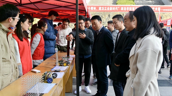 校黨委副書(shū)記彭虎軍宣布第五屆科技文化藝術(shù)展開(kāi)幕,并與參加開(kāi)幕式的200余名師生一同參觀展出,觀看航模表演。