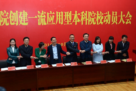 10月23日,在商洛學(xué)院創(chuàng)建一流應(yīng)用型本科院校動員大會上,副校長劉寶盈代表學(xué)校與商洛市六縣一區(qū)政府、商丹園區(qū)管委會簽署《商洛市校地合作聯(lián)盟框架協(xié)議》,組建商洛市校地合作聯(lián)盟,為商洛區(qū)域經(jīng)濟社會發(fā)展提供教育保障、科技支撐和智力支持。