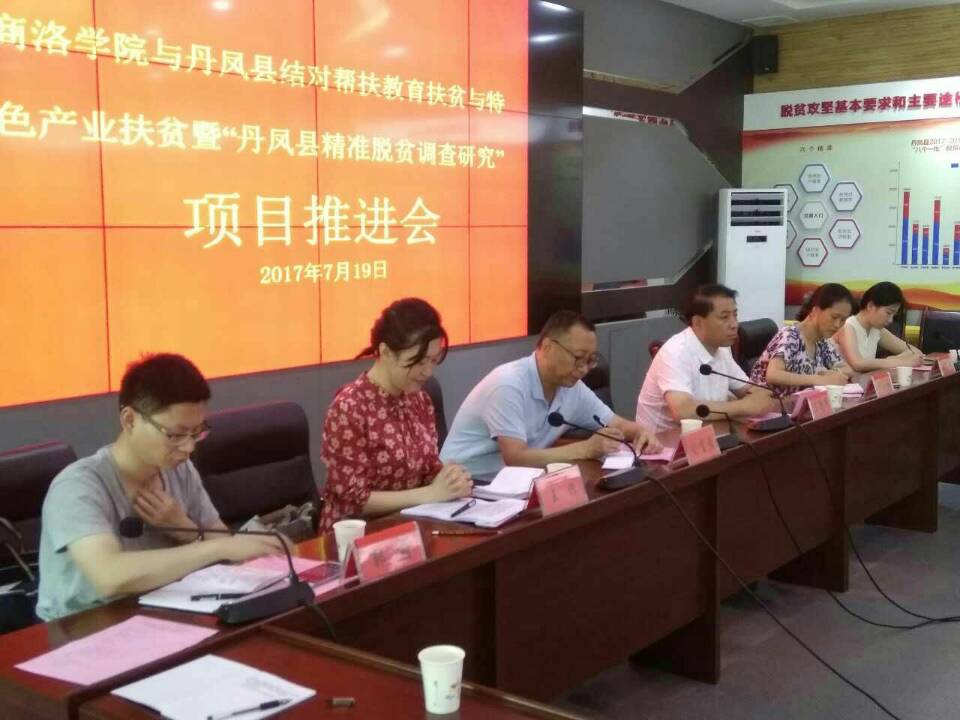 為了進一步做好特色產(chǎn)業(yè)高校扶貧工作,7月19日下午,商洛學院與丹鳳縣結對幫扶教育扶貧與特色產(chǎn)業(yè)扶貧暨“丹鳳縣精準脫貧調查研究”項目推進會在丹鳳縣扶貧開發(fā)局召開。副校長劉寶盈參加會議。