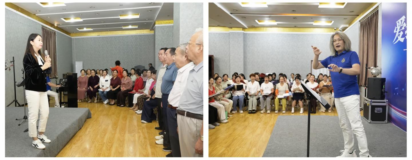 在藝術(shù)學(xué)院的大力支持下,包括現(xiàn)任院長(zhǎng)唐曌堃、音樂(lè)系趙超等多位教師熱情投入,積極踐行我?!傲⒆闵搪?、服務(wù)地方”的辦學(xué)定位。而合唱團(tuán)最深刻的蛻變,在于藝術(shù)認(rèn)知的覺(jué)醒。一位七旬團(tuán)員感慨:“唱了十幾年歌,現(xiàn)在才明白合唱是聲部的和諧,是集體的藝術(shù)。”從“自?shī)首詷?lè)”到“追求和諧”,群眾文化在高雅藝術(shù)的浸潤(rùn)中完成升華。