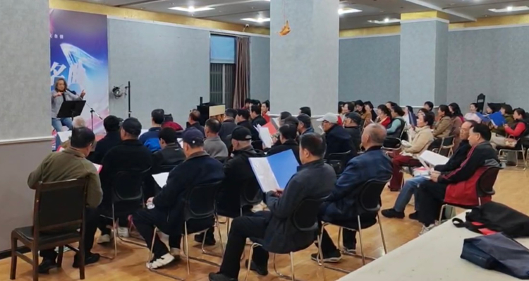 排練強(qiáng)度驟然提升,每周訓(xùn)練增至四至五次。曾老師放下課余所有休息時(shí)間,每晚準(zhǔn)時(shí)出現(xiàn)在排練廳。面對(duì)團(tuán)員年齡跨度大、音樂(lè)基礎(chǔ)不一的現(xiàn)實(shí),他創(chuàng)新教學(xué)方法,化繁為簡(jiǎn)拆分聲部,借助骨干帶動(dòng)整體,甚至為高齡團(tuán)員設(shè)計(jì)個(gè)性化練習(xí)。最令人動(dòng)容的是團(tuán)隊(duì)的凝聚力——百分之九十以上的團(tuán)員全勤參與,七十多歲的長(zhǎng)者亦風(fēng)雨無(wú)阻。