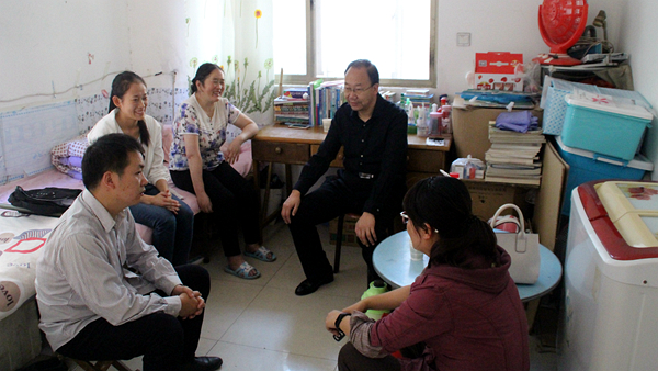生物學(xué)院領(lǐng)導(dǎo)、老師也曾多次去住所看望她們,2017年9月7日,生物學(xué)院黨總支書(shū)記丁爭(zhēng)尚教授、團(tuán)總支書(shū)記蘇鐵柱老師、輔導(dǎo)員張俊華老師再次來(lái)到唐偉麗住處進(jìn)行了家訪(fǎng)和慰問(wèn),為她送去米面油等生活日用品。感受到學(xué)校的關(guān)心幫助,原本一直樂(lè)觀(guān)開(kāi)朗的唐偉麗,抑制不住內(nèi)心的感激之情,眼淚不停地在眼眶里打轉(zhuǎn)。她說(shuō):“感謝學(xué)校領(lǐng)導(dǎo)、老師和好心人一直以來(lái)對(duì)我們這個(gè)家庭的關(guān)心和幫扶,我現(xiàn)在最大的心愿是畢業(yè)能找到一個(gè)好工作,回報(bào)這些關(guān)愛(ài)我、幫助我的好心人。我也會(huì)帶著媽媽去工作,一直和她在一起,照顧她,一家人在一起就是最大的幸福,我是媽媽永遠(yuǎn)的依靠。”