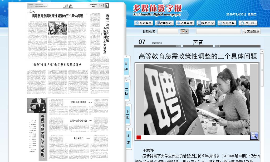 陜西高校教學名師、商洛市名師、我校馬克思主義學院教授王思懷在《教師報》2020年9月30日理論版面頭條位置發(fā)表署名文章,直面高等教育就業(yè)率、獎助學金、學業(yè)縮水問題,全文如下: