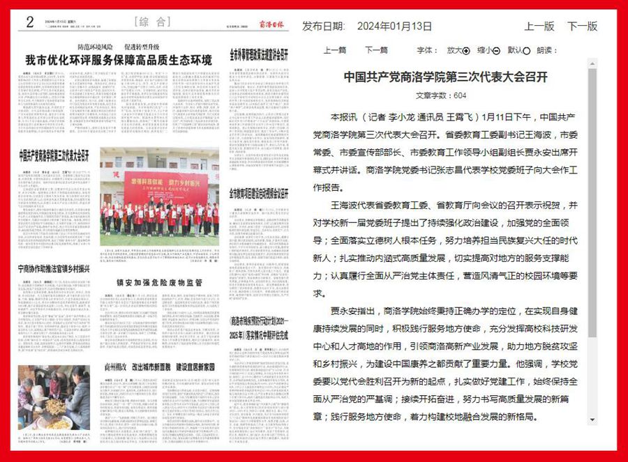 商洛日報:中國共產(chǎn)黨商洛學院第三次代表大會召開